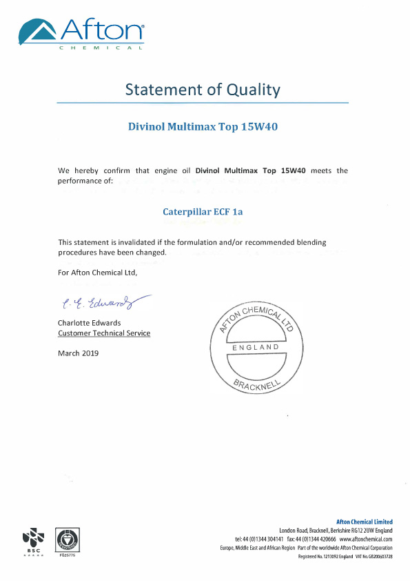 - Divinol Multimax Top 15W40 #49720 mit Meets Caterpillar ECF-1A specification