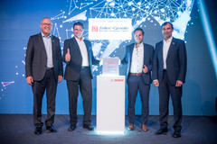 BU: Vor rund 100 Vertretern aus der Zuliefererindustrie verlieh Bosch die begehrten Auszeichnungen unter dem Motto „Partners in Success“: einer davon Schmierstoffexperte Zeller+Gmelin aus dem schwäbischen Eislingen. Im Bild v.l.n.r: Dr. Karl Nowak (President Corporate Sector Purchasing and Logistics bei Bosch),