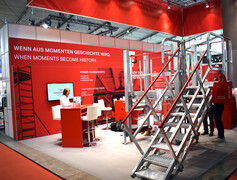 BU: Am Messestand zeigt HYMER u.a. eine Steigleiter mit Rückenschutzring. Mit Hilfe des 3D-Steigleiter-Konfigurators lässt sich am Bildschirm mit wenigen Mausklicks die Basiskonstruktion einer Steigleiter entwerfen.