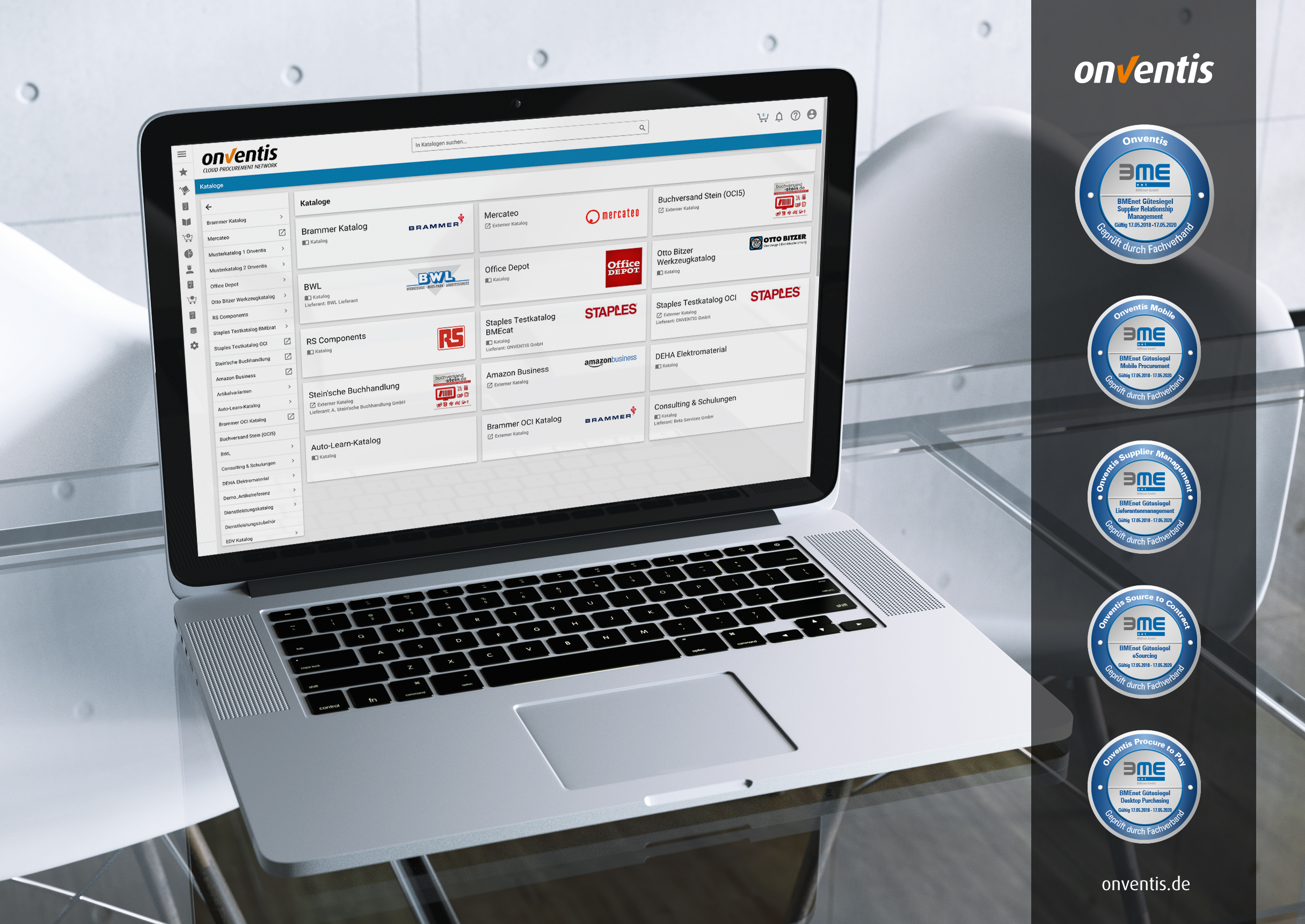 Das Onventis Cloud Procurement Network vernetzt B2B-Geschäftsprozesse von Einkäufern und Lieferanten – einfach und sicher. Der Cloud-Pionier Onventis ist auf ganzheitliche Einkaufsprozesse fu?r den Mittelstand spezialisiert und steht für „Cloud Services Made in Germany“. Weltweit wickeln rund 350.000 registrierte Nutzer mehr als 5,5 Milliarden Euro Einkaufsvolumen u?ber das Onventis Beschaffungsnetzwerk ab. Die modularen E-Procurement Lösungen von Onventis wurden mit den BME-Gütesiegeln ,,Supplier Relationship Management" und „Mobile Procurement" ausgezeichnet.