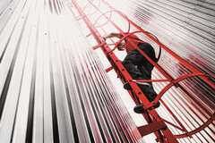 BU: Beim Maschinentritt 6878 ergibt sich die Rutschhemmung durch die Oberflächenbeschaffenheit der Stufen, während die Stufenstehleiter 8624 die strengen Vorgaben der Bewertungsgruppe R13 durch eine Kunststoffbeschichtung aus Polyurea erfüllt. Beide Oberflächen sorgen für ein Höchstmaß an Arbeitssicherheit und Ergonomie.
