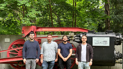 BU: Autorenteam unter Dr. Jan Kotschenreuther, Fakultät für Maschinenbau und Mechatronik an der HKA: von links nach rechts: Lukas Norz, Sebastian Krämer Leon Harlacher, Stefan Bader