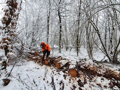 Eislingen, 07. Februar 2022 - Holz wird meist im Herbst oder Winter geerntet. Besonders Frostperioden eignen sich für Einschlag und Rückung um den Boden zu schonen. Auf kleinen Flächen oder in sensiblen Waldbeständen kommen statt der Holzvollerntemaschinen hochfunktionale Motorsägen zum Einsatz. Eine wichtige Rolle spielt dabei der Einsatz eines geeigneten Schmierstoffs. Er muss leistungsfähig sein und gleichzeitig Mensch und Umwelt schonen. Mit Divinol AquaChainFluid hat Schmierstoffexperte Zeller+Gmelin ein ressourcenschonendes, wasserbasierendes Sägekettenfluid im Sortiment.
